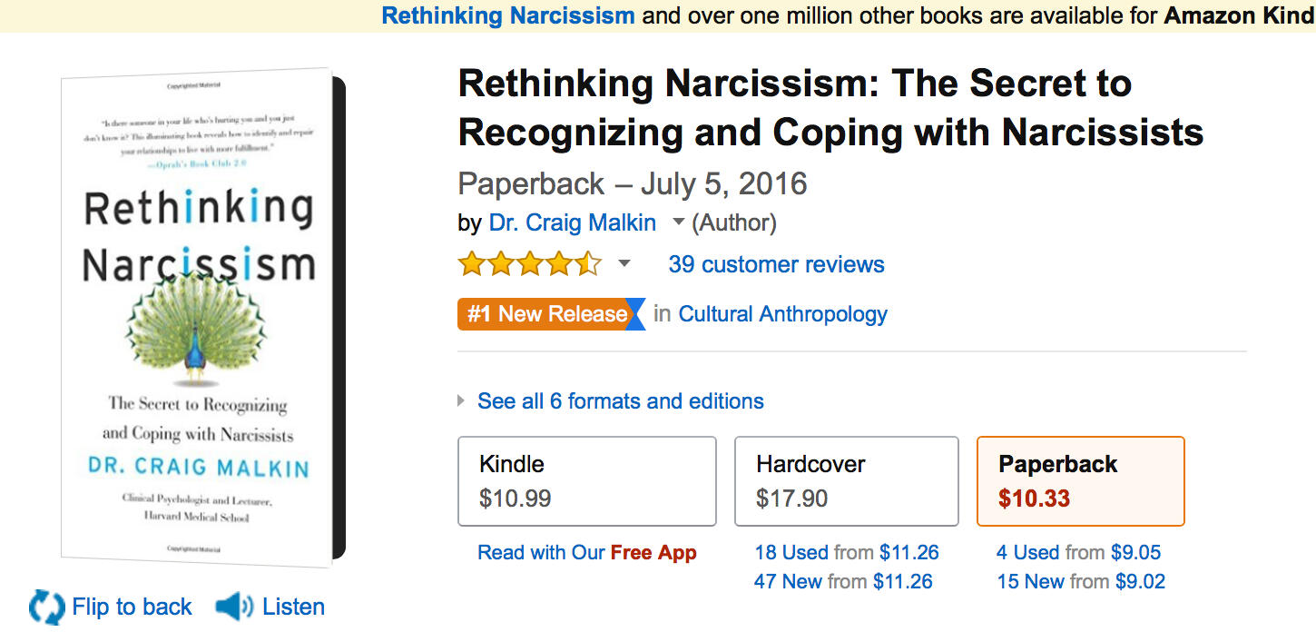 We've kicked off! As of yesterday, now everywhere books are sold--in stores and online--you can get your copy of Rethinking Narcissism in paperback! I want to thank you - my family, friends, colleagues, readers and community for getting the book launch off to an awesome start.